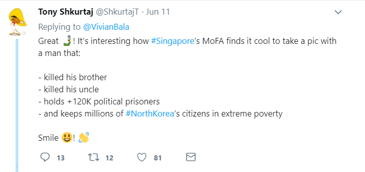 Yes, it is true that as ministers, they should be aware of the power they wield and the influence they carry. This is especially true on social media platforms, where the youth of Singapore spend most of their time lurking. Those who are not aware of the full extent of Kim’s human rights violations might be misled into thinking that he is the huggable chap who always gets extra servings of meat from the auntie at economical rice stalls because he is “still growing”.