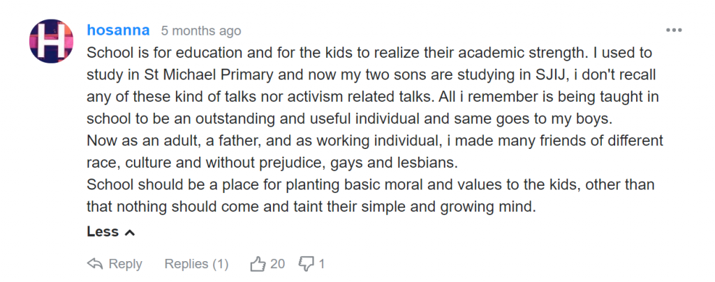 Yet, in the online sphere, aside from the usual vitriol aimed at LGBTQ+ people, there were numerous comments on how schools were “not the right place” for activism.