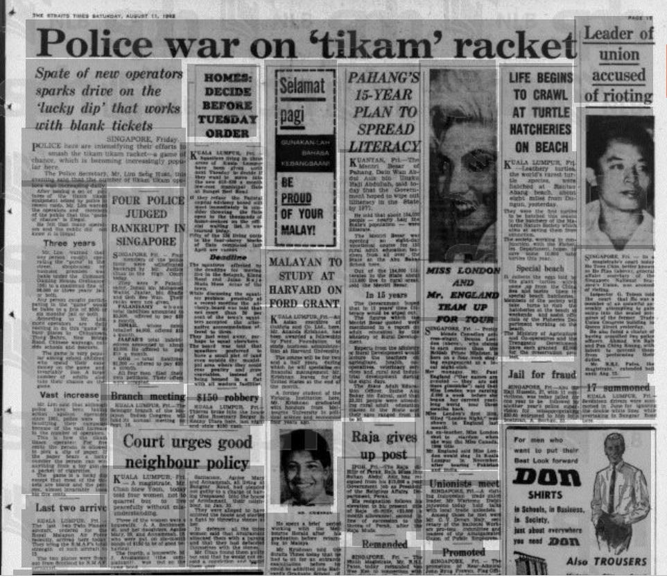 Many citizens were naturally outraged. They found it ridiculous that something as minor as Tikam Tikam should trigger such a disproportionate response from the authorities. It was, after all, a ‘petty’ game of chance. The government, however, did not agree. Stressing the dangers of Tikam Tikam, the police inspector argued that “operating a Tikam Tikam might seem like a minor offence but a lot of schoolchildren have fallen victims …”