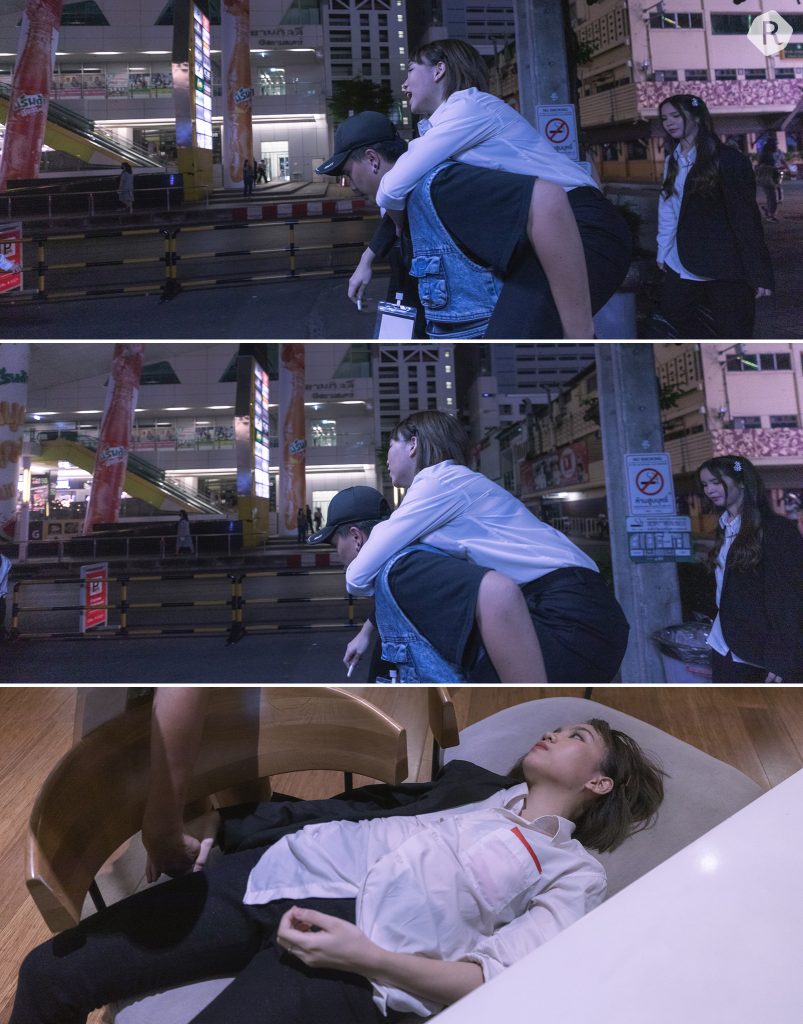 ในภาพคือพี่ AR พาบอสขี่หลังเพื่อเข้าไปปฐมพยาบาลในล็อบบี้โรงแรม ก่อนจะพาขึ้นไปที่ห้องประชุมที่ถูกเปลี่ยนเป็นห้องพักศิลปิน