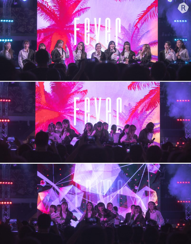 เสียงแฟน ๆ ยังคงดังกึกก้อง มีคนร้องตาม มีคนโบกมือ มีคนถ่ายคลิป และถ่ายรูป ส่วนน้อง ๆ ก็ยังทำหน้าที่บนเวทีได้อย่างดี เสียงเพลงแนว Synth Pop ของวง FEVER ดังลั่นสยามสแควร์ในช่วงดึก เราเดินย้ายมุมกล้องไป ๆ มา ๆ เห็นรอยยิ้มของคนดูอย่างชัดเจน เพียงแต่ว่าก่อนน้องขึ้นโชว์มีคนมาบรีฟกับเราว่าห้ามถ่ายติดหน้าคนดูกับวง ก็เลยไม่ได้ถ่ายภาพหน้าคนดูมา